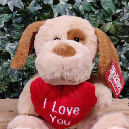 Gorgeous soft teddy George, holding a heart the perfect little extra for your valentine